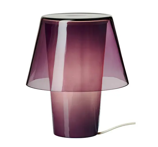 Luminozitatea creata de o lampa de masa mov seteaza un ambient exceptional pentru savurarea unui pahar de vin, in dreptul unui semineu calduros.