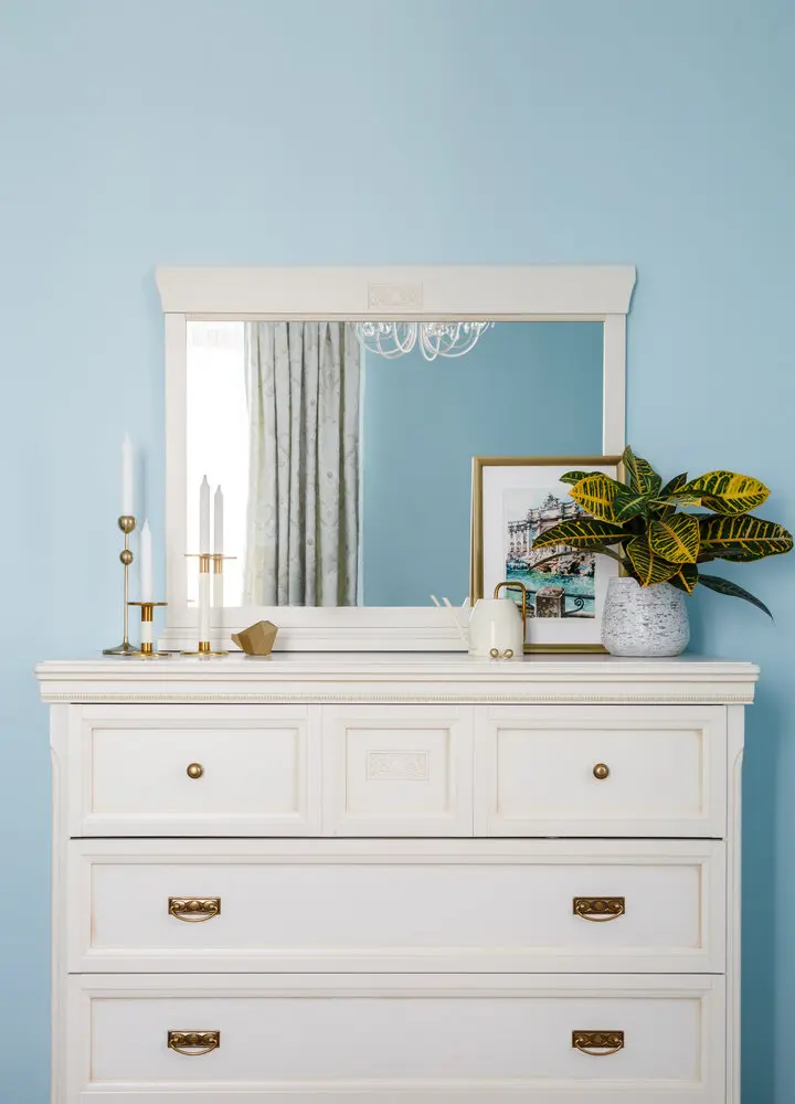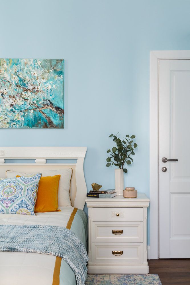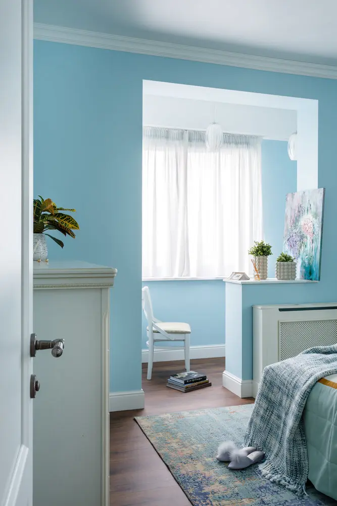 Nuante pastelate de albastru in dormitorul matrimonial