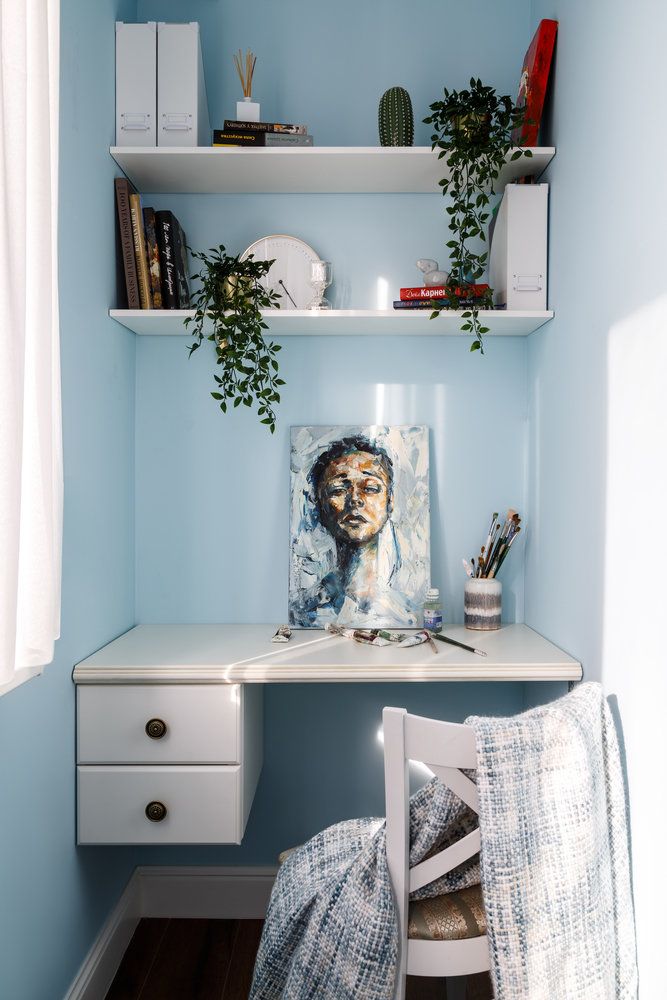 Deschide GaleriaIngredientul cheie al amenajarii il constituie utilizarea nuantelor de albastru , culoare a serenitatii si spiritualitatii, atat ca fond cat si la nivel de accent, uni sau ca parte integranta a imprimeurilor.