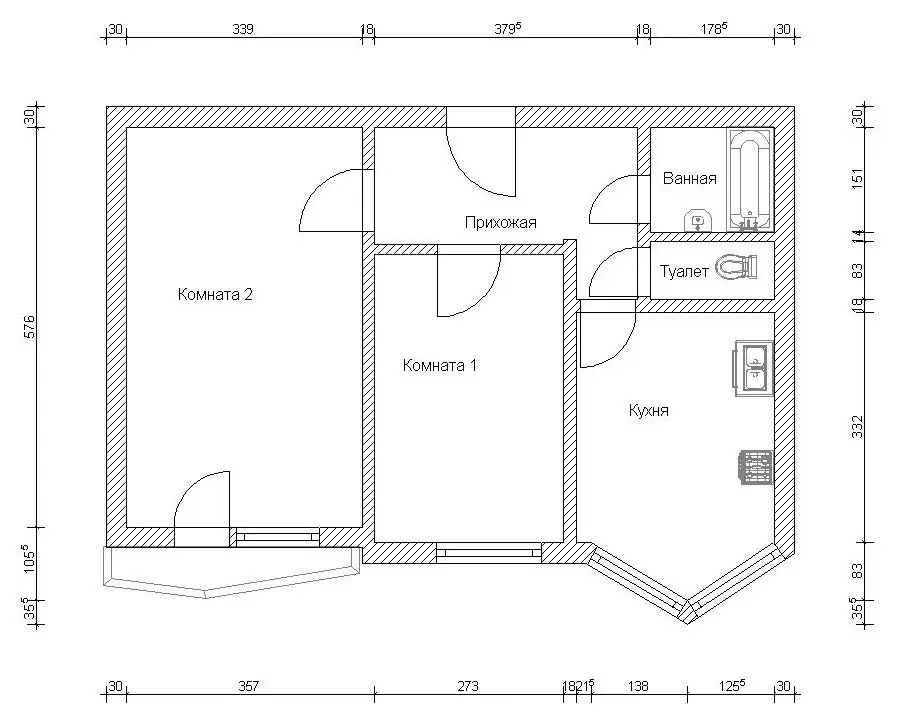 Nu au intervenit la compartimentarea apartamentului; au ales sa pastreze holul de distributie si raportul dintre camere. Din coridor se acceseaza baia, grupul sanitar si bucataria, in partea stanga, iar pe partea opusa sunt usile de la cele doua camere. Camera mare, cu acces catre balconul inchis, este acum living si dormitor matrimonial, iar camera mica a fost amenajata pentru cei doi copii.