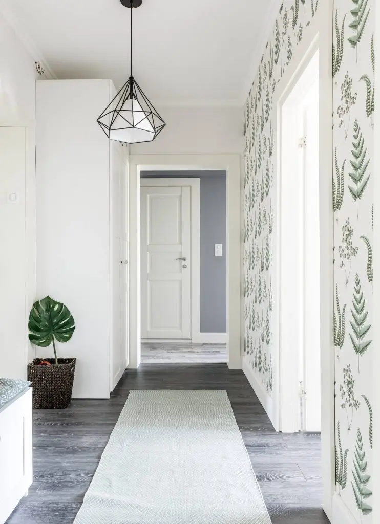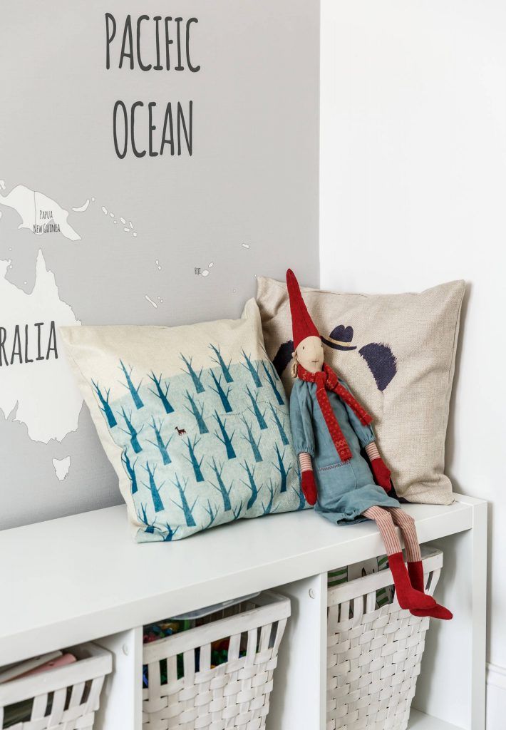 Au folosit tapetul ca principal aliat in decoarea peretilor, fiind un suport util in redarea atmosferei dorite. Pe peretele din living regasim un tapet cu un model geometric discret, un fundal perfect pentru compozitia de fotografii inramate. Tapetul cu harta lumii, care acopera un perete intreg din camera copiilor a fost comandat la Little Hands. Un model cu frunze viu colorate , marca Borostopeter a fost aplicat in hol.