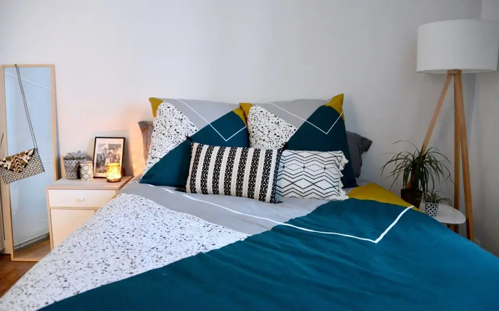 Acelasi spirit cochet il intalnim si in amenajarea zonei de dormit; patul ocupa aproape intreg spatiul, iar cele doua noptiere si lampadarul completeaza mobilarea intr-un mod discret. Din pacate, in imagini nu a fost surprins si dulapul aferent pentru depozitarea hainelor.