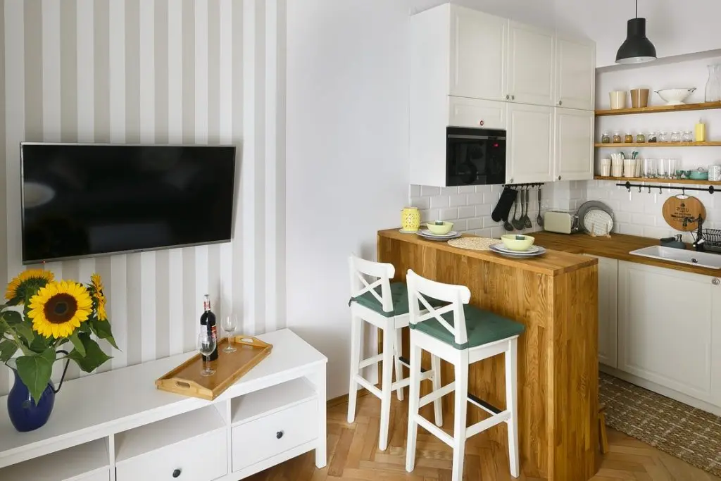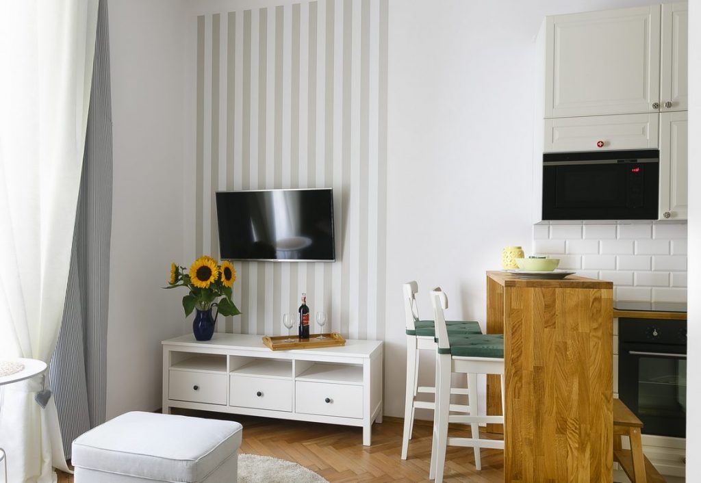 Deschide GaleriaIncaperile sunt minuscule, dar au reusit sa fie amenajate functional si cu bun-gust. Zona bucatariei sau mai degraba a chicinetei este foarte bine exploatata, asigurand necesarul unei bune functionari. Depozitare, zona de spalat, zona de gatit si un bar pentru luat masa, toate sunt reunite in spatiul ingust si mic al acestui sector al apartamentului.