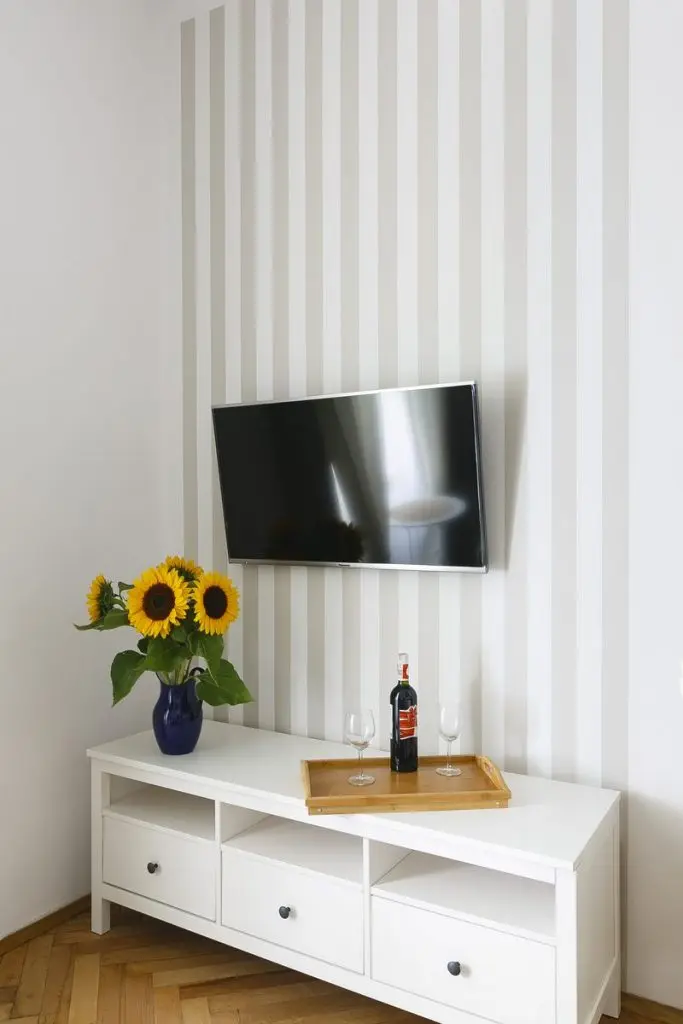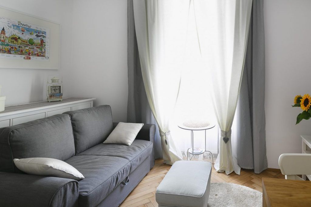 Filtreaza placut lumina si ofera un aer elegant, cochet spatiului in ansamblul sau. Valabil si pentru cele din dormitor. Un alt detaliu care mi-a placut este cel al dungilor verticale care atrag atentia de la dimensiunile spatiului; in acelasi timp conturezi o zona de accent binevenita.