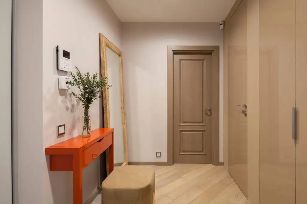 Cromatica blanda, neutra permite dezvoltarea unor elemente de accent atat prin forma (jocul geometriilor) cat si prin culoare reusind sa imprime un sentiment de confort, de camin primitor.