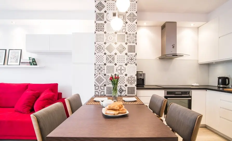 Deschide Galeria Amenajarea poarta semnatura echipei de designeri de la Inside Story din Polonia. Au mizat pe detalii care impacteaza, cum ar fi canapeaua rosu-aprins din living, detaliul cu placi decorative din zona diningului sau al peretelui-accent din dormitor. Toate acestea cu cateva insertii in spirit clasic pe care le vei putea remarca in hol.