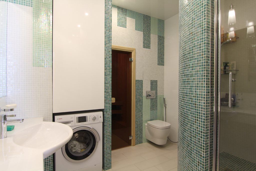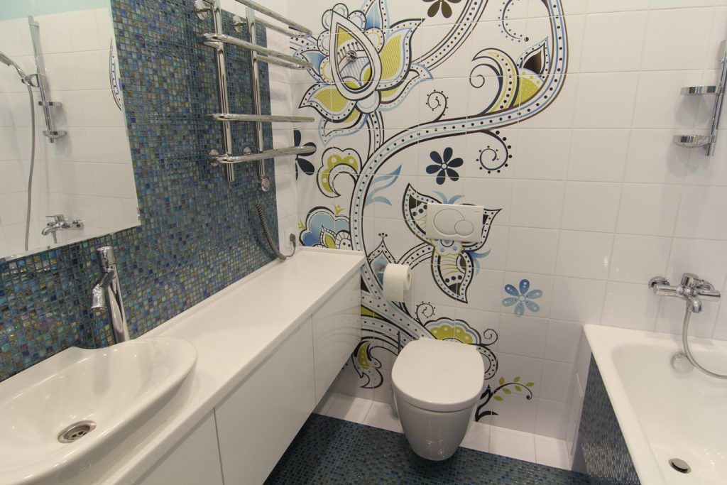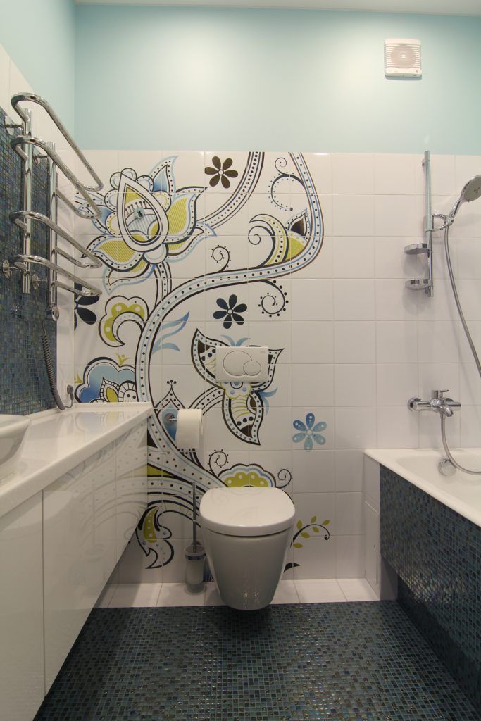 Insertiile de verde crud si albastru marin, dar si autocolante cu motive florale din baie ne duc cu gandul la o casa de vacanta pe malul marii sau al oceanului.