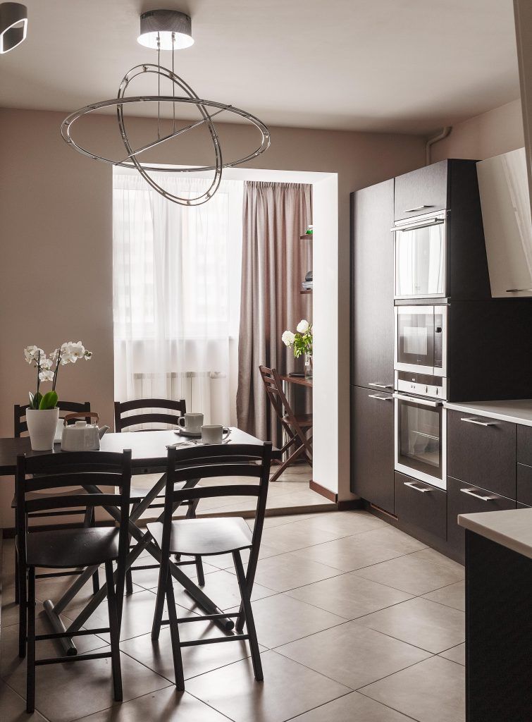 Bucataria este dispusa pe doua randuri, avand disponibile toate electrocasnicele necesare. Partea superioara a mobilierului de bucatarie este facut la comanda intr-un stil asimetric, avand corespondent in mobilierul pentru T V din camera de zi. In imediata apropiere a bucatariei a fost amenajat un spatiu pentru masa si un colt de relaxare destinat diminetilor pe care gazda le va petrece aici.