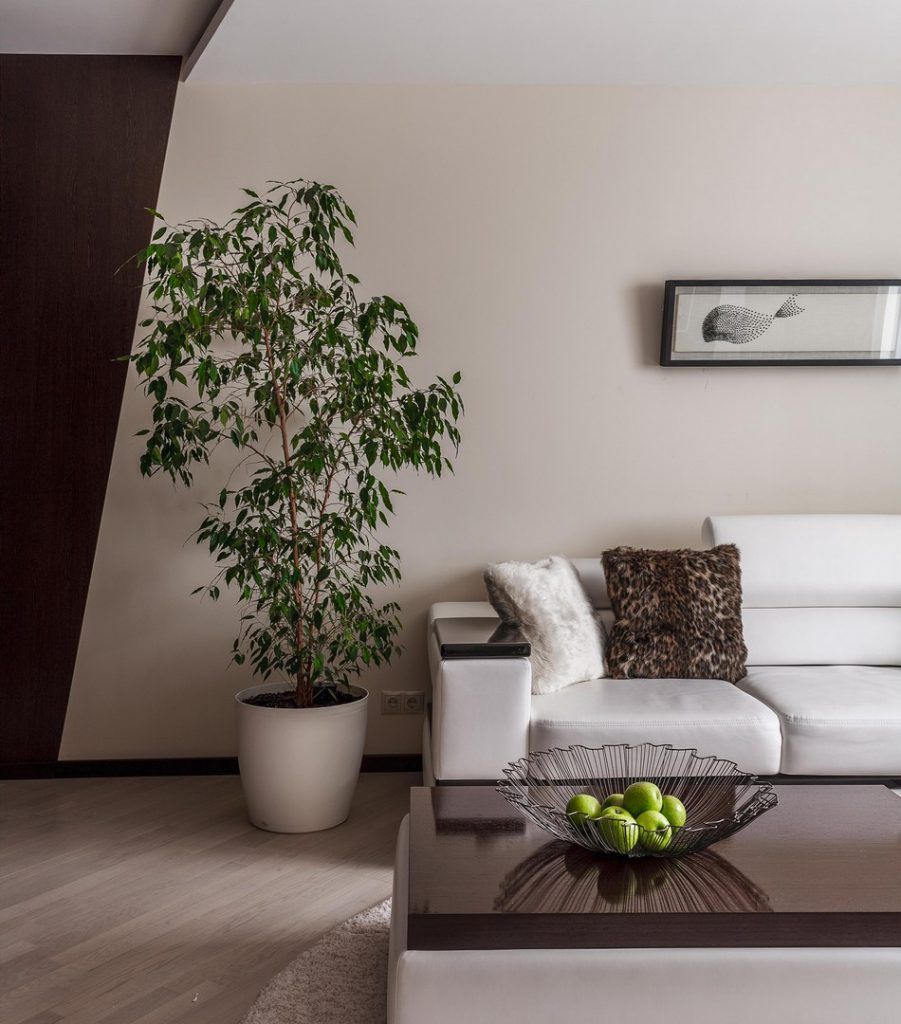 In zona de zi, accentul vizual cade asupra covorului rotund cu aspect moale din centrul camerei care indulceste abundenta formelor drepte ale mobilierului. Beneficiara iubeste plantele verzi, asa ca acestea si-au facut loc in amenajare pentru a-i oferi prospetimea dorita.
