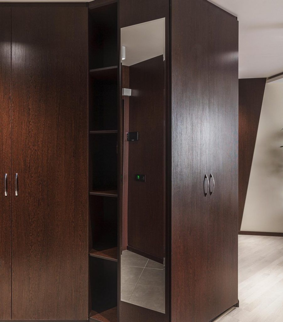 Dormitorul asigura piesele de mobilier necesare pentru minimul de confort: un pat, doua noptiere, o comoda si un dulap incastrat cu oglinzi montate pe usile glisante. Lebada neagra pozitionata pe comoda imprima eleganta si gratiozitate zonei destinate somnului. Spatiul este invadat de o cantitate generoasa de lumina naturala care amplifica efectul de spatialitate.