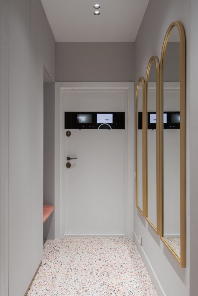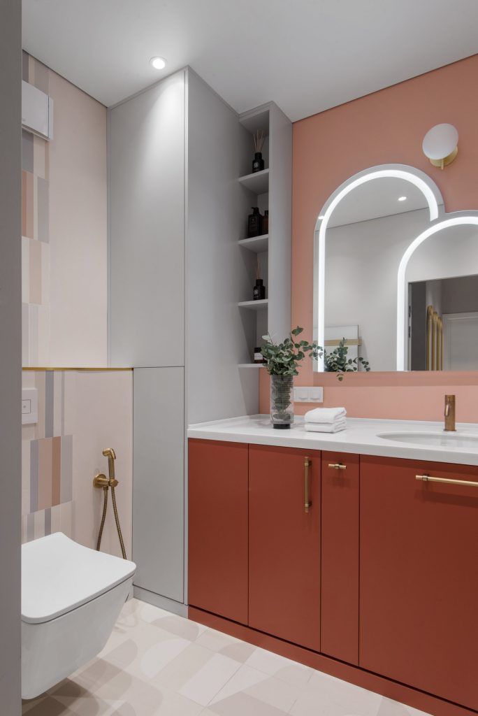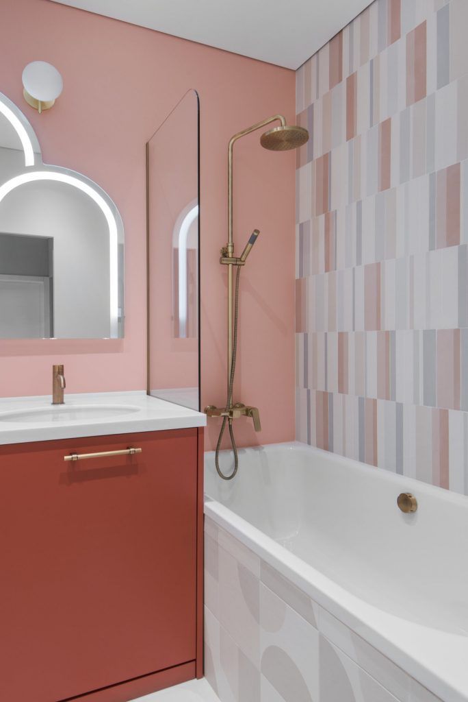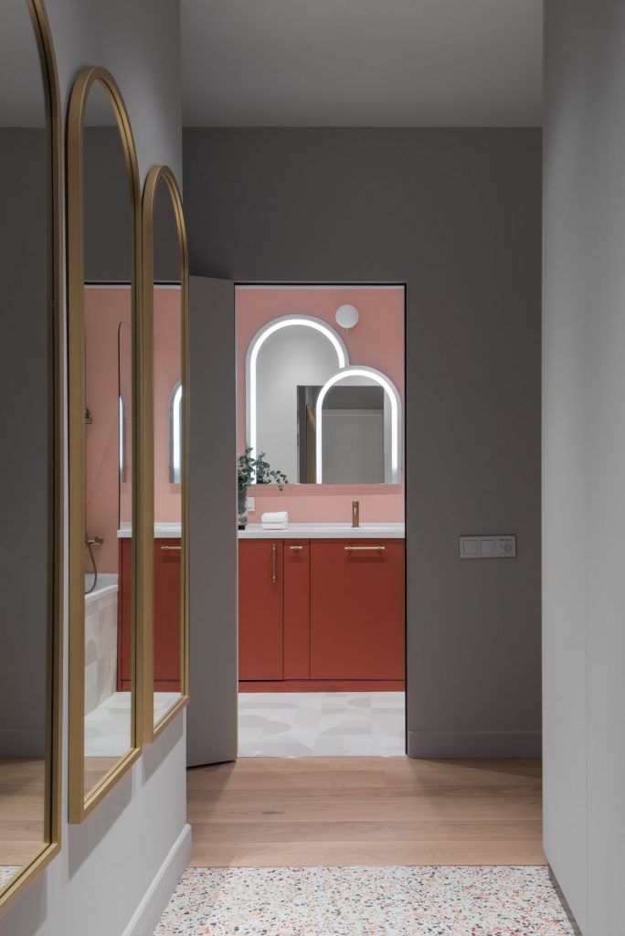 Deschide GaleriaIn afara de conceptul cromatic, in care predomina rozul prafuit printre alte nuante de bomboane, caracteristica principala a amenajarii acestor 56 de metri patrati este crearea multor spatii de depozitare intr-un spatiu mic, probabil cea mai mare provocare a intregului proiect.