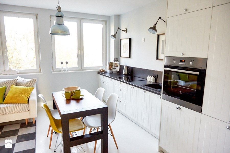 In galeria foto vei putea vedea si cateva imagini cu apartamentul inainte de amenajare. Pentru a mari spatiu, designerul a ales sa elimine peretele despartitor dintre bucatarie si living, creand astfel o camera de zi mai ampla si mai luminoasa. Bineinteles, acest lucru a fost posibil pentru ca peretele nu era unul din structura de rezistenta, ci unul din gips-carton.