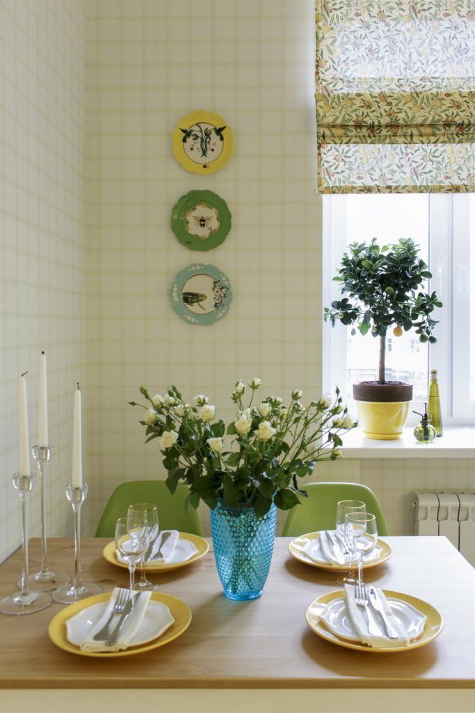 Cand tot ceea ce vezi in afara locuintei tale este gri si incarcat, cu blocuri si trafic, gandul parca iti zboara spre culorile calde si echilibrate ale naturii. Acesta a fost si cazul acestei amenajari de bucatarii pentru care beneficiarii au dorit un ambient primitor si vesel cu accente cromatice de galben, verde crud si imprimeuri florale.