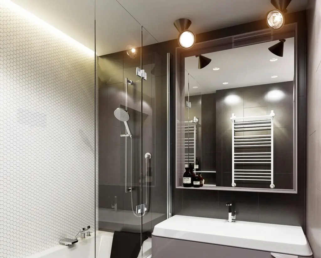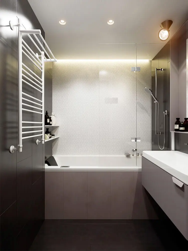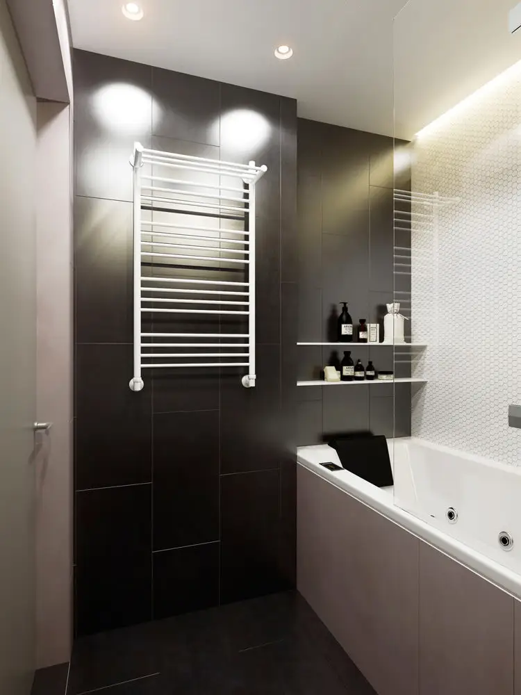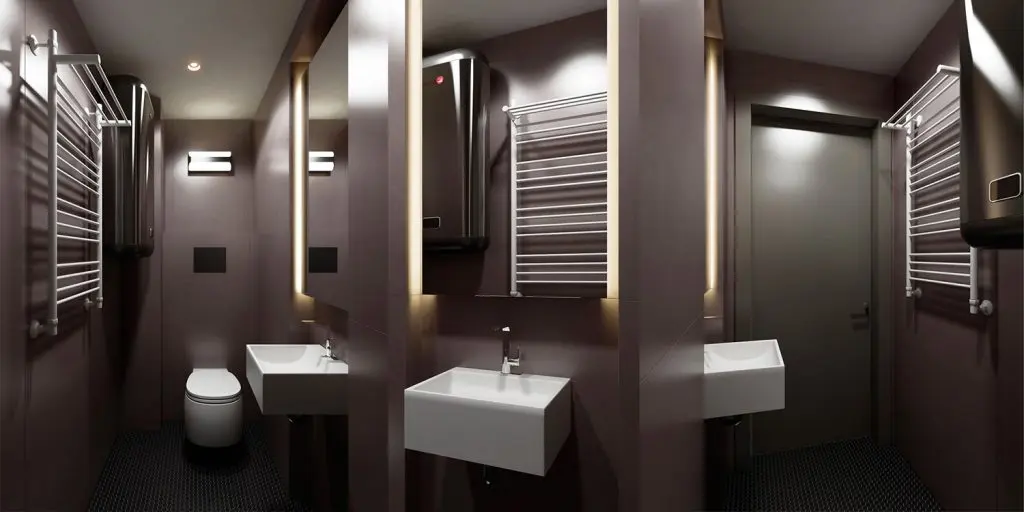 Tot o dorinta a proprietarului a fost si amenajarea a 2 spatii separate pentru toaleta si unul pentru imbaiere. Vorbim de 2 functiuni distincte, impecabil amenajate in tonuri masculine, cu lumini ambientale si lavoare suspendate pentru a economisi cat mai mult din acest spatiu mic. Un adevarat rasfat!