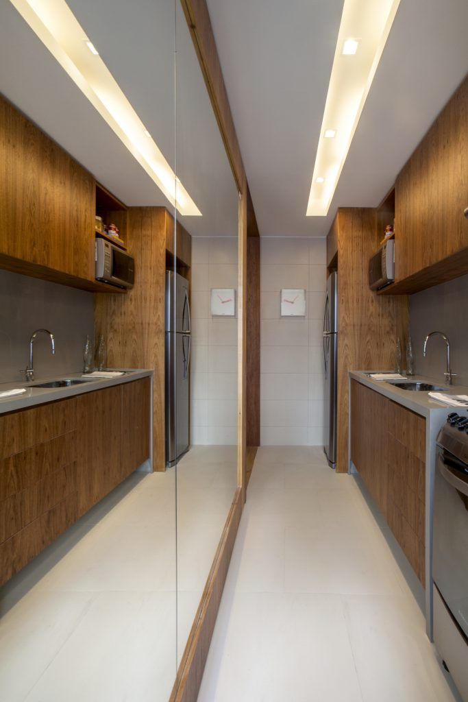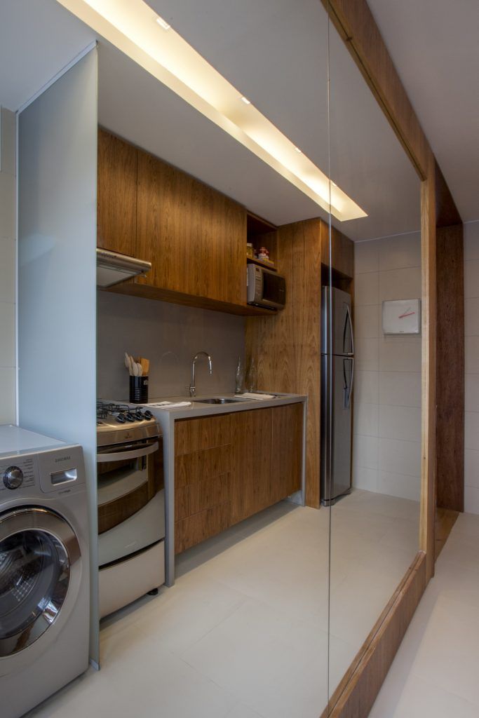 Bucataria comunica direct cu acest dining, usa dintre camere fiind desfiintata. Configuratia camerei a permis doar o dispunere liniara a mobilierului, inclusiv a electrocasnicelor. Pentru a crea iluzia de amplificare a spatiului, peretele opus mobilei a fost placat cu oglinzi ingenioasa abordare pe care o recomandam doar daca nu exista copii mici in familie.