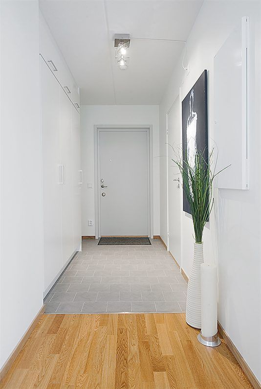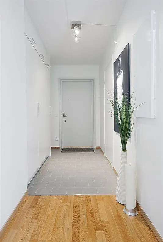 Holul cuprinde dulapuri inzidite care asigura spatii de depozitare generoase.