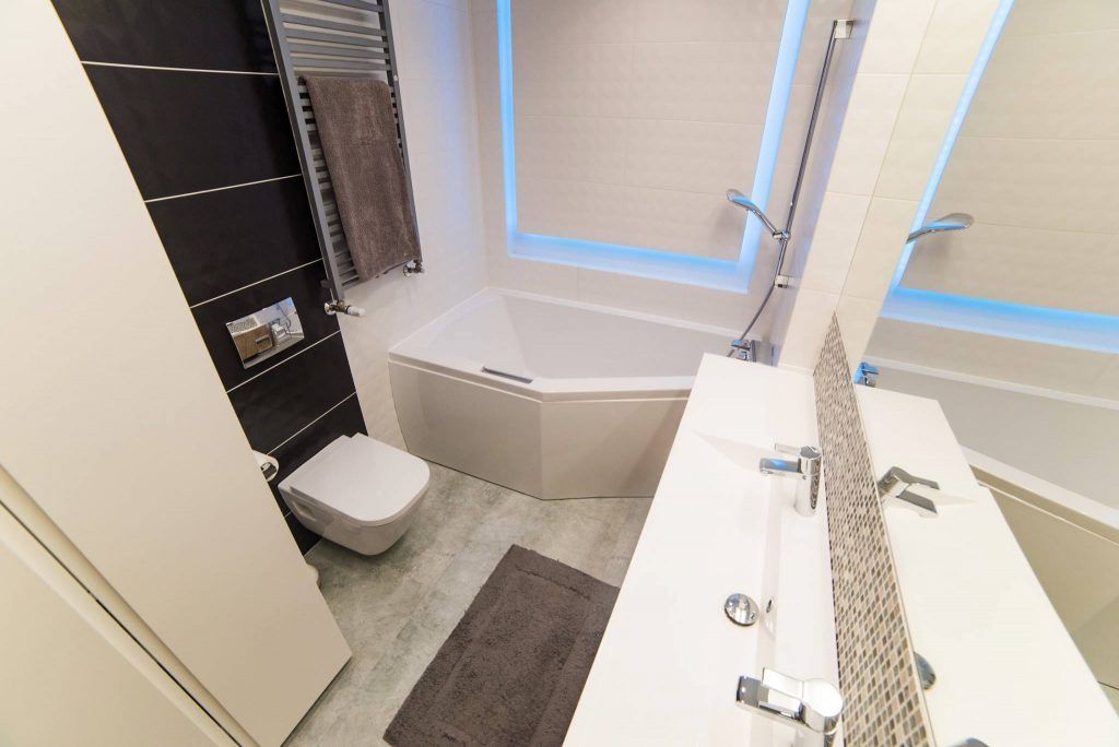 Pentru ca amenajarea finala sa nu fie monotona sau prea simpla, au fost folosite accente de culoare, imprimeuri si geometrii care sa imprime spatiului un aer modern, cu personalitate. In living a fost creat un joc de umbre si lumini prin aplicarea mai multor spoturi pe tavan si a unui corp suspendat deasupra zonei pentru luat masa.
