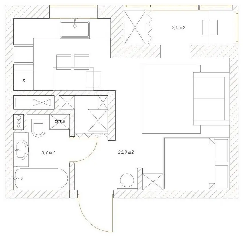 Fa rai cu ce ai, asa am rezuma amenajarea de astazi. Vorbim despre un apartament de 29 metri patrati original amenajat cu ajutorul designerului de interior, Julia Veselova.