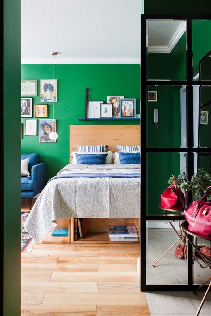 Apartamentul este unul al contrastelor. De-a dreptul curajoase alegerile cromatice; atat de mult verde intr-un spatiu mic cu siguranta nu vei vedea prea curand! In mod surprinzator totul este coerent si bine legat. Ajuta din plin si faptul ca s-a renuntat la usi (exista doar cea de la intrare si cea de la baie), obtinand astfel o amenajare fluenta, cu treceri discrete. Spatiul pare o galerie de arta, toate tablourile si grafismele facand parte din colectia personala a cuplului.