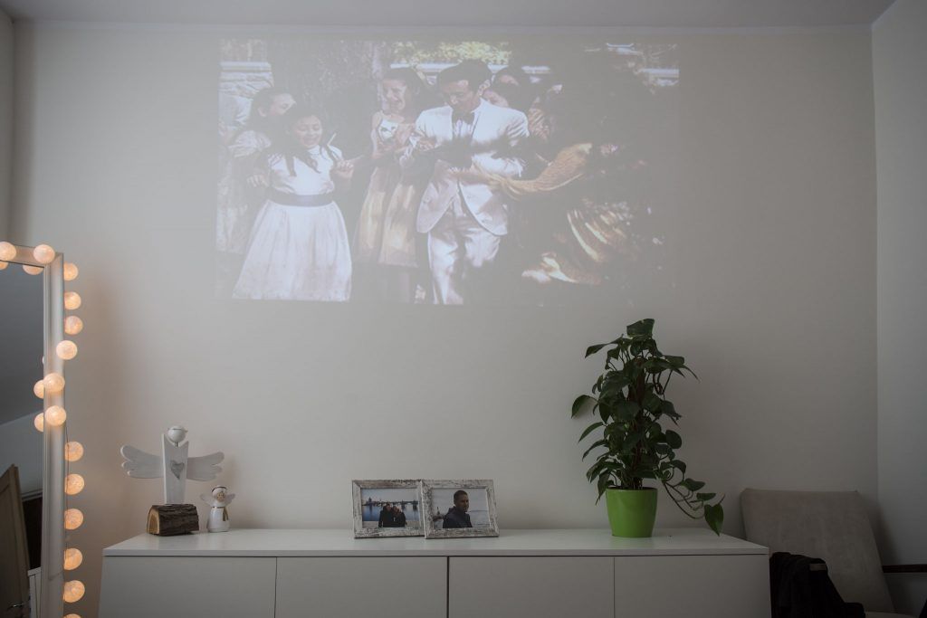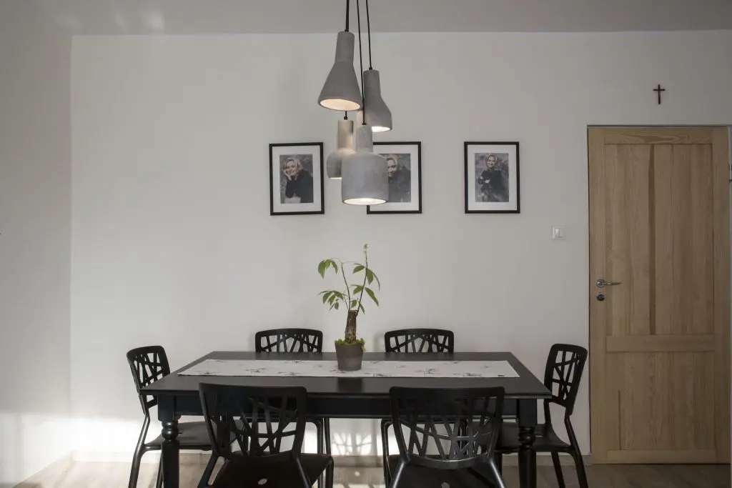 Printre elementele care ies in evidenta regasim masa extensibila din living care poate gazdui pana la zece persoane si peretele din dormitor dedicat proiectarii filmelor in serile lungi si friguroase de iarna.