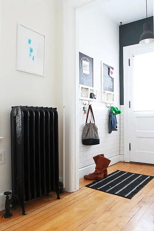 Pana si caloriferul a fost vopsit in negru pentru a pastra tematica alb-negru
