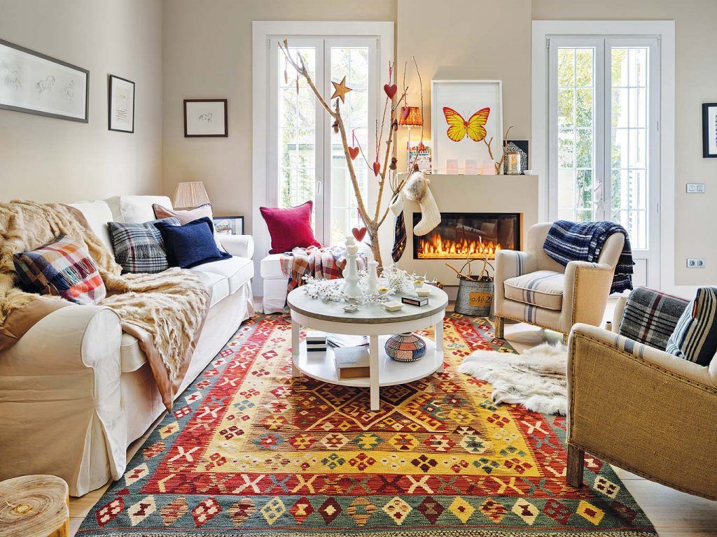 Covorul este piesa de rezistenta a amenajarii. Viu colorat, de inspiratie rustica, iti aminteste de casa bunicilor.