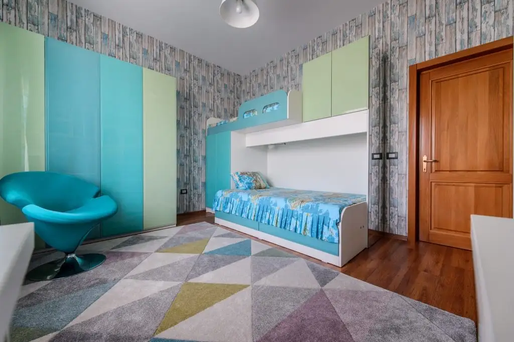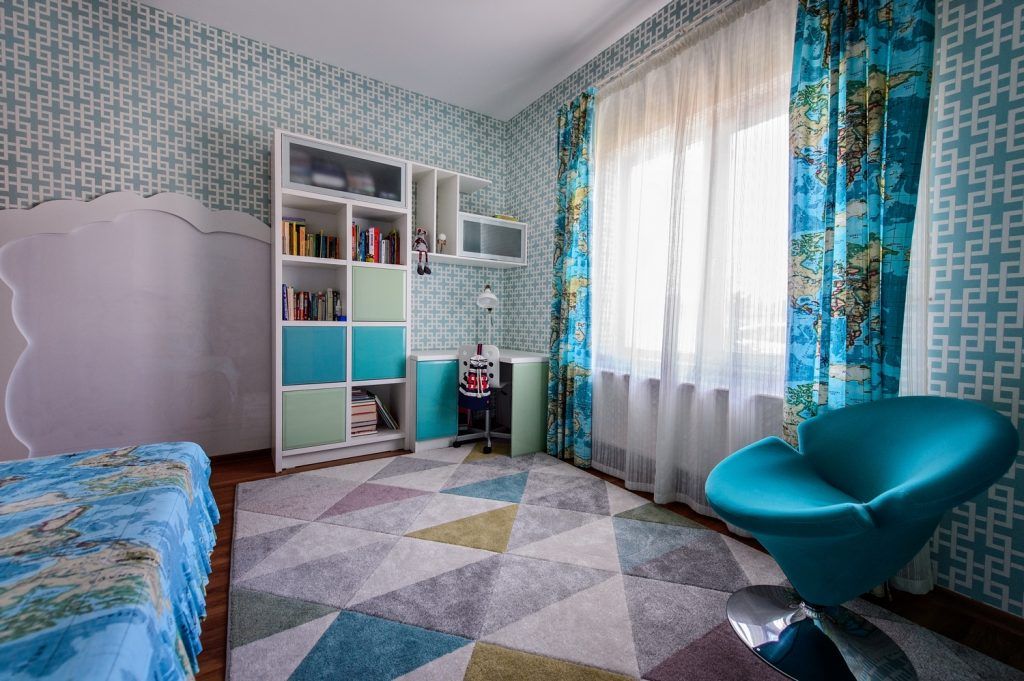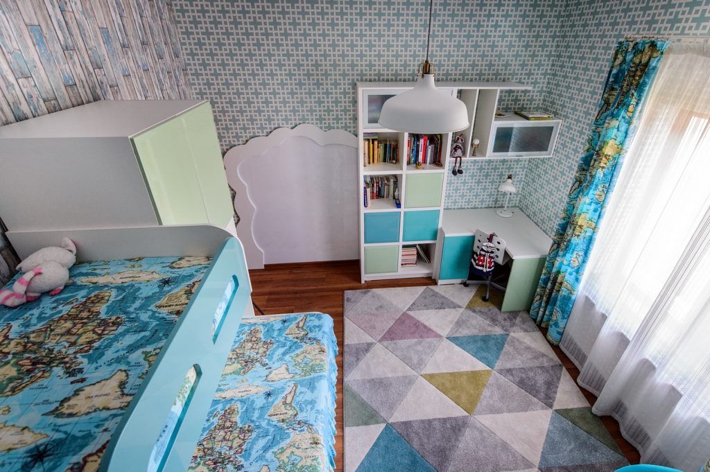 Dormitorul fetitei a fost decorat tinand cont de dubla destinatia a camerei – loc de odihna si recreere, dar si de studiu. In plus, o cerinta speciala a fost patul supraetajat pentru prietenele care o viziteaza si raman peste noapte. Din punct de vedere cromatic, am optat pentru un mix de culori pastelate si senine, albastrul turcoaz deschis dominand aceasta incapere.