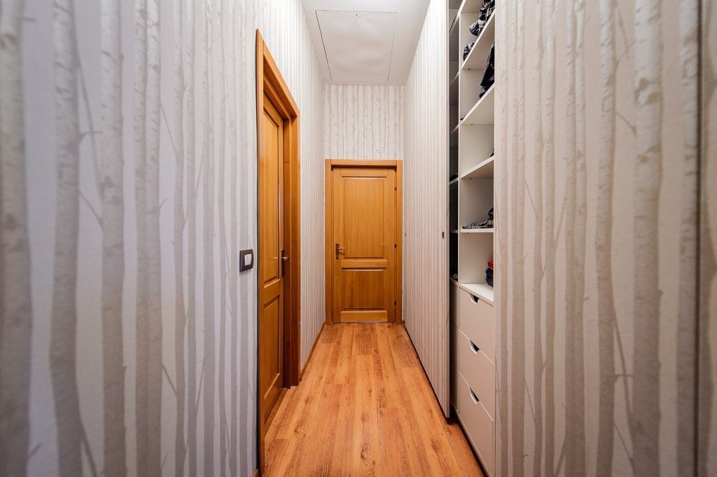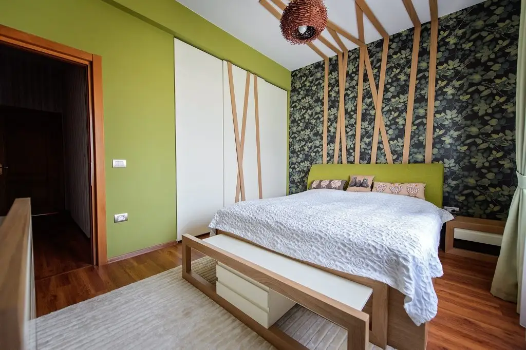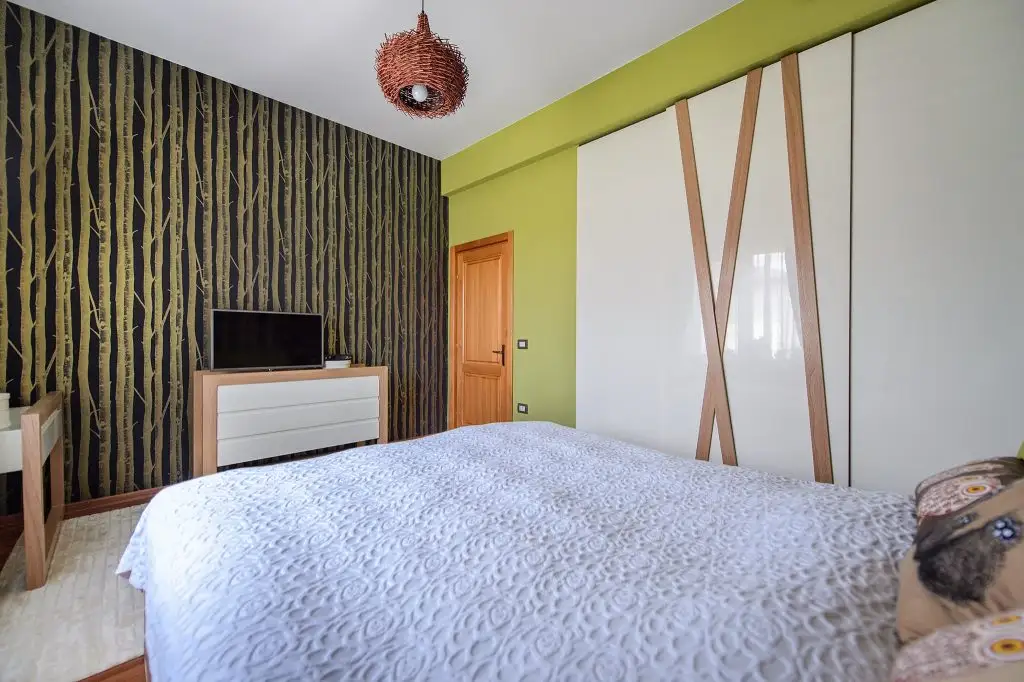 S-au folosit si doua tipuri de tapet, unul imitand foarte bine scandura scorojita, iar celalalt – o interpretare moderna a tapetului retro. Am tinut cont si de pasiunea fetitei pentru desen creand o tabla pe care aceasta isi poate exersa talentul.