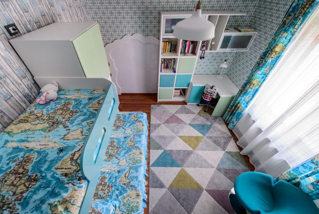 Colectia de imprimeuri din camera este completata de modelul cu harti al draperiei, respectiv al cuverturii, un print colorat si totodata un motiv mereu interesant de explorat."