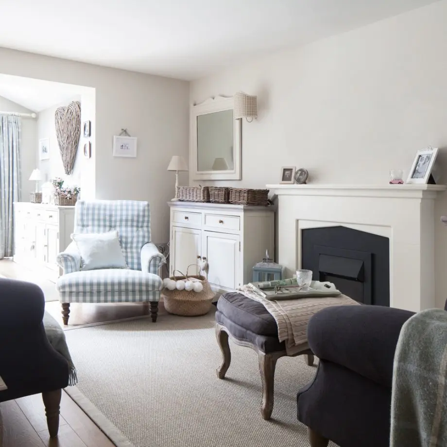 Pentru living, amenajarea a pornit de la semineu, inspiratie din casele tipic victoriene. Si mobilierul a fost ales in acelasi spirit, rand pe rand venind canapeaua si fotoliile foarte confortabile. Cromatic, au optat pentru culori foarte deschise, pastelate pentru a pastra interioarele cat mai luminoase si primitoare.