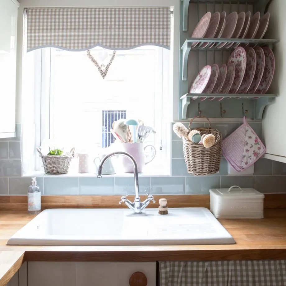 In bucatarie, amenajarea ne aminteste de interioarele tip cottage, cu mobilier din lemn si perdelute mici pentru fereastra. Alegerile au fost foarte inspirate, totul este coerent si placut asortat. Suportul pentru vase, blatul de lucru din lemn, chiuveta, placile ceramice tip Metro in culoare verde-menta, accesoriile si decoratiunile specifice compun un decor autentic rustic englezesc, dar intr-o nota moderna. Dining-ul este o incapere de sine statatoare, cu mobilier specific, excelent decorat.