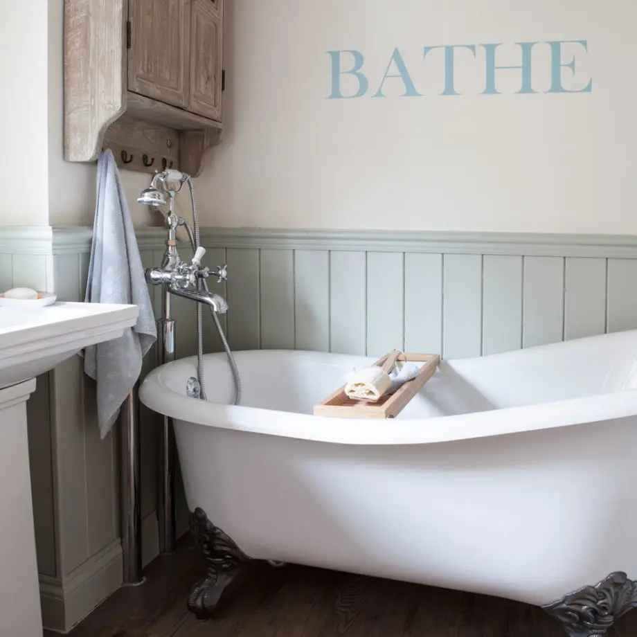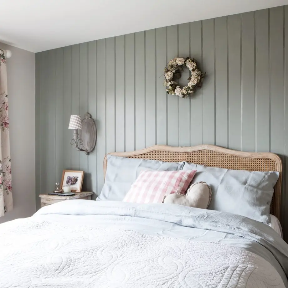 Dormitorul matrimonial urmareste linia aceluiasi design vintage, rustic. Placarea peretelui cu lemn, noptierele, imprimeurile florale si texturile bogate compun un decor special, intim, plin de rasfat. O amenajare pe masura vom gasi si in baia aferenta dormitorului.