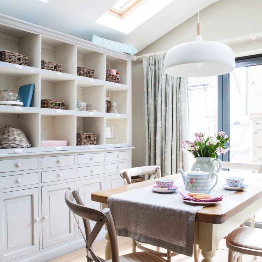 In bucatarie, amenajarea ne aminteste de interioarele tip cottage, cu mobilier din lemn si perdelute mici pentru fereastra. Alegerile au fost foarte inspirate, totul este coerent si placut asortat. Suportul pentru vase, blatul de lucru din lemn, chiuveta, placile ceramice tip Metro in culoare verde-menta, accesoriile si decoratiunile specifice compun un decor autentic rustic englezesc, dar intr-o nota moderna. Dining-ul este o incapere de sine statatoare, cu mobilier specific, excelent decorat.