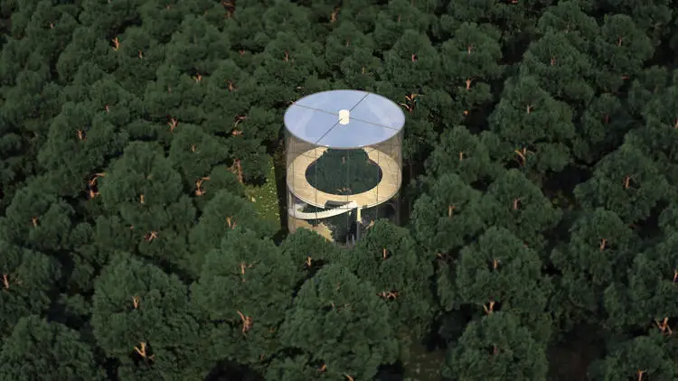Cladirea circulara de trei etaje va fi construita in jurul unui brad de 12 metri.