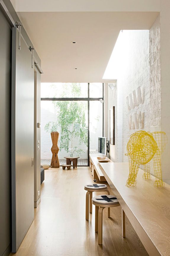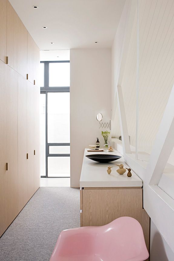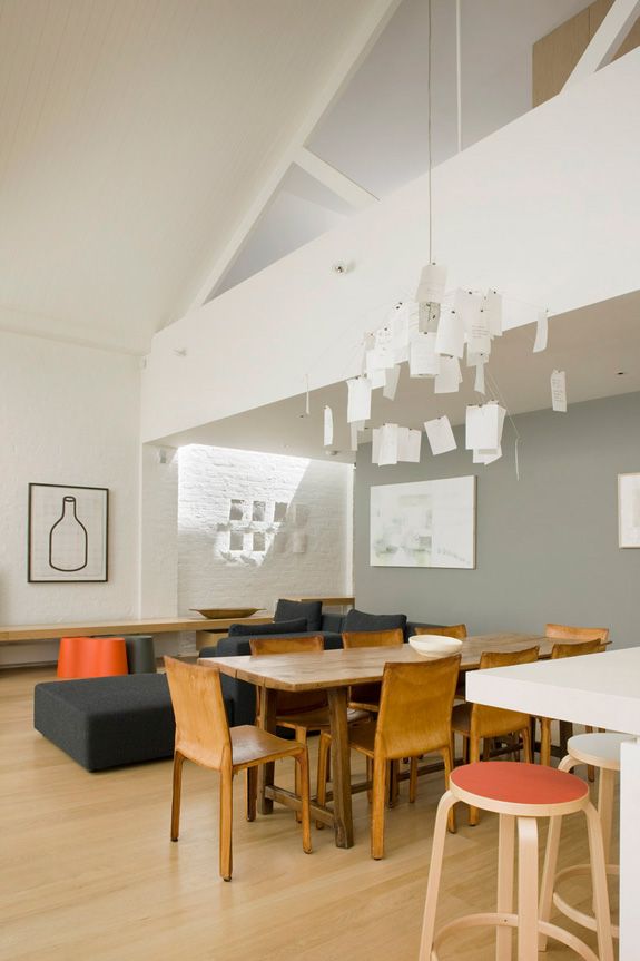 Deschide GaleriaDesi la exterior, arhitectii au decis sa nu intervina asupra aspectului original al cladirii, pastrand caramida rosie originala, usile banale de lemn si geamurile initiale simple, la interior, au lasat imaginatia sa zboare. Ca paleta cromatica au mers pe culorile care nu dau gres niciodata: alb in combinatie cu beige-ul natural al lemnului, accentuat pe alocuri cu detalii in culori primare, puternice.
