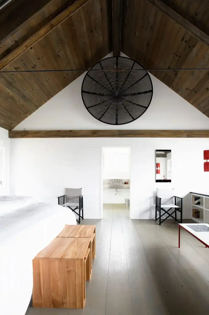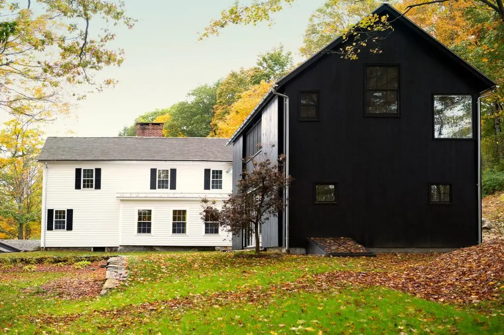 Casa alba in stil rustic a fost construita special pentru ca familia sa petreaca aici timp de calitate impreuna. Aceasta a primit ulterior o noua extensie prin construirea modernului hambar negru, care gazduieste o camera pentru relaxare la parter si un dormitor matrimonial la etajul superior.
