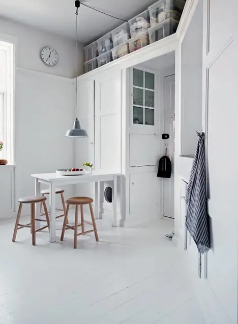 Tavane inalte, mult alb, lemn, accente de negru si cu un spatiu foarte eficient utilizat sunt detaliile care contureaza aceasta casa scandinava. Fiecare camera a fost gandita cat mai minimalist, spatiile multifunctionale predominand in ansamblul locuintei.