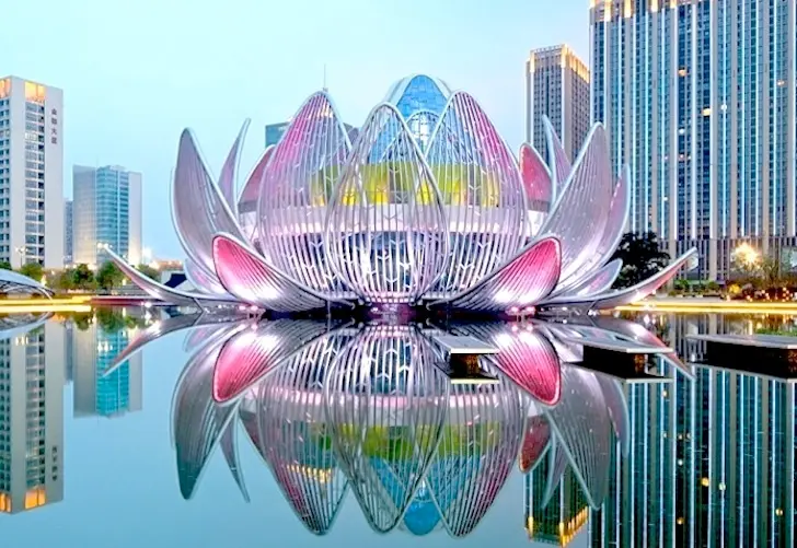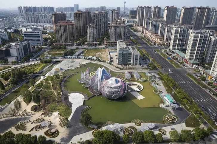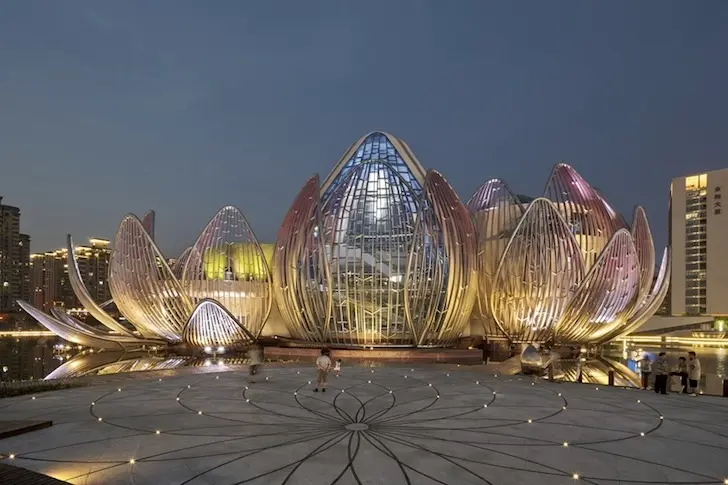 Inspirata de floarea de nufar, unul dintre simbolurile cele mai cunoscute ale culturii chineze, aceasta cladire culturala in forma de floare se ridica dramatic dintr-un lac artificial din orasul Wujin, China si prezinta cele trei stadii ale dezvoltarii florii, de la boboc pana la inflorirea completa.