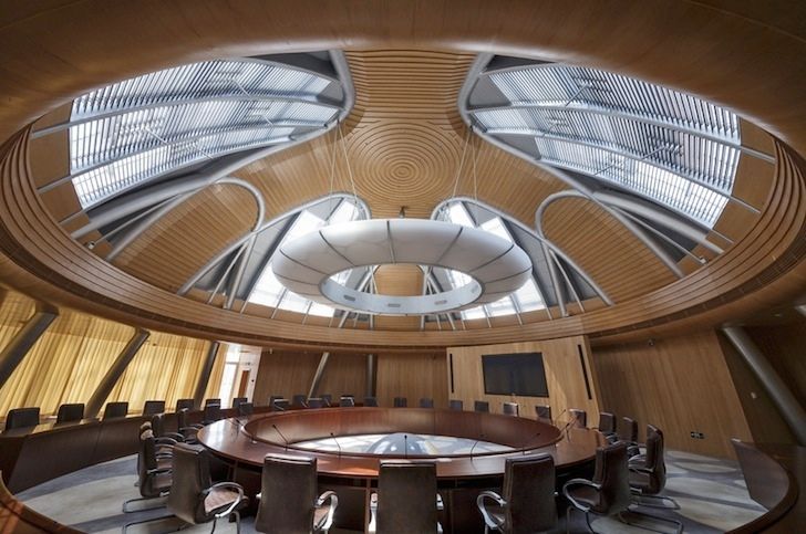 Proiectata pentru a fi eficient din punct de vedere energetic, cladirea este racita folosind 2500 de pile geotermale instalate la baza lacului artificial. Conform arhitectilor, centrul acestuia foloseste racire prin evaporare de la suprafata lacului pentru a opera un cos termal pentru ventilatie naturala.