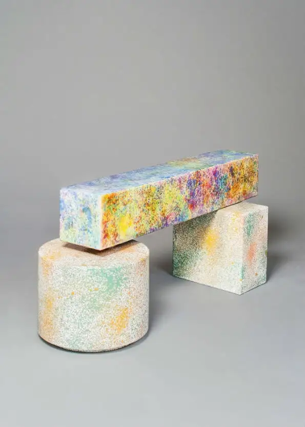 Deschide GaleriaDesignul colectiei a fost creat de Sarah Kueng si Lovis Caputo, iar modelele pe care le-au adoptat sunt niste motive spatiale. Chiar daca arata ca si cum au fost stropite cu vopsea, in realitate piesele de mobilier au fost pictate cu colorant vegetal.