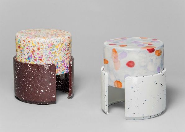 Deschide GaleriaDesignul colectiei a fost creat de Sarah Kueng si Lovis Caputo, iar modelele pe care le-au adoptat sunt niste motive spatiale. Chiar daca arata ca si cum au fost stropite cu vopsea, in realitate piesele de mobilier au fost pictate cu colorant vegetal.