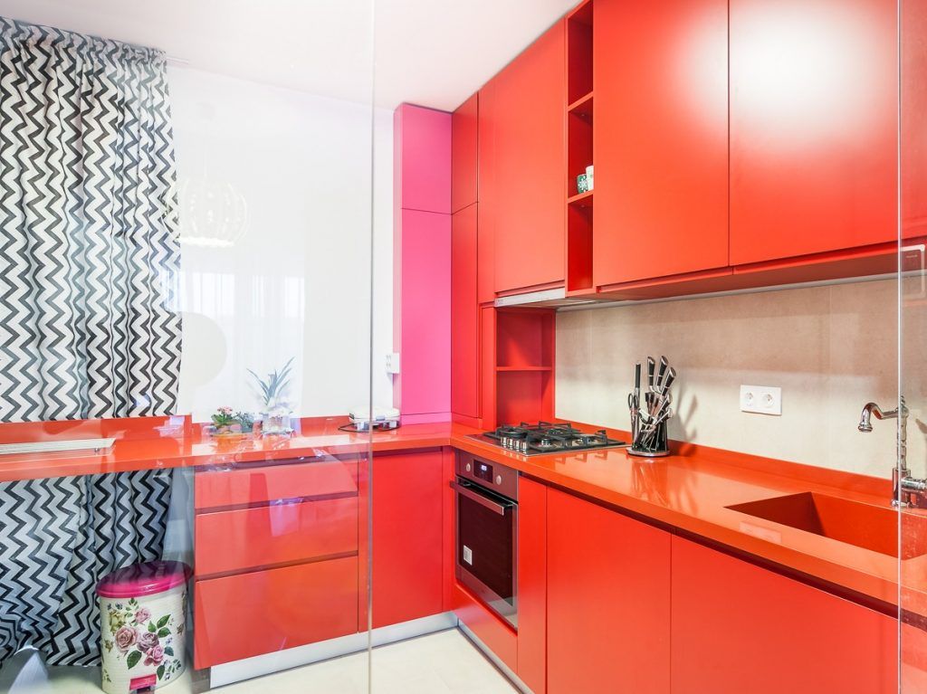 Probabil cea mai rosie bucatarie din lume, iata cum descrie echipa de laCorespaceaceasta amenajare. Proiectul a luat nastere gratie unor beneficiari curajosi, mai exact, o familie cu doi copii, care si-au dorit un camin foarte colorat.