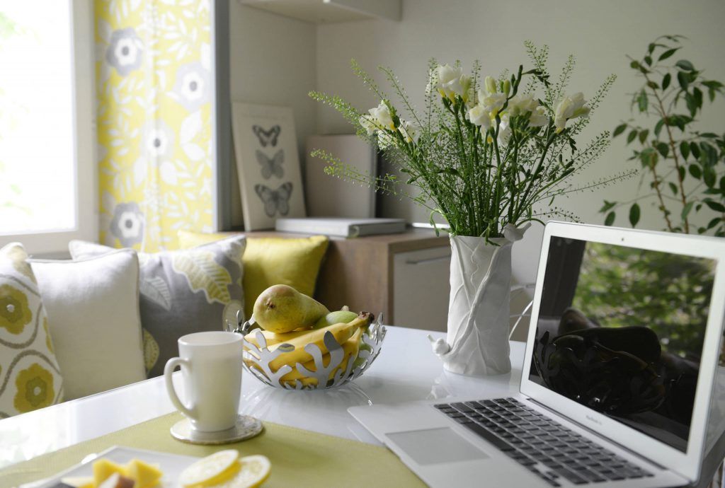 Cromatica calda predominanta ajuta spatiul sa para mai luminos si mai primitor. Tapetulgalben cu motiv floral se regaseste in toate functiunile din locuinta, urmarind o continuitate vizuala care atrage atentia indiferent de coltul in care privesti. Nuantele vesele, deschise imprima amenajarii un aer primavaratic, usor feminin, potrivit de altfel cu personalitatea beneficiarei.