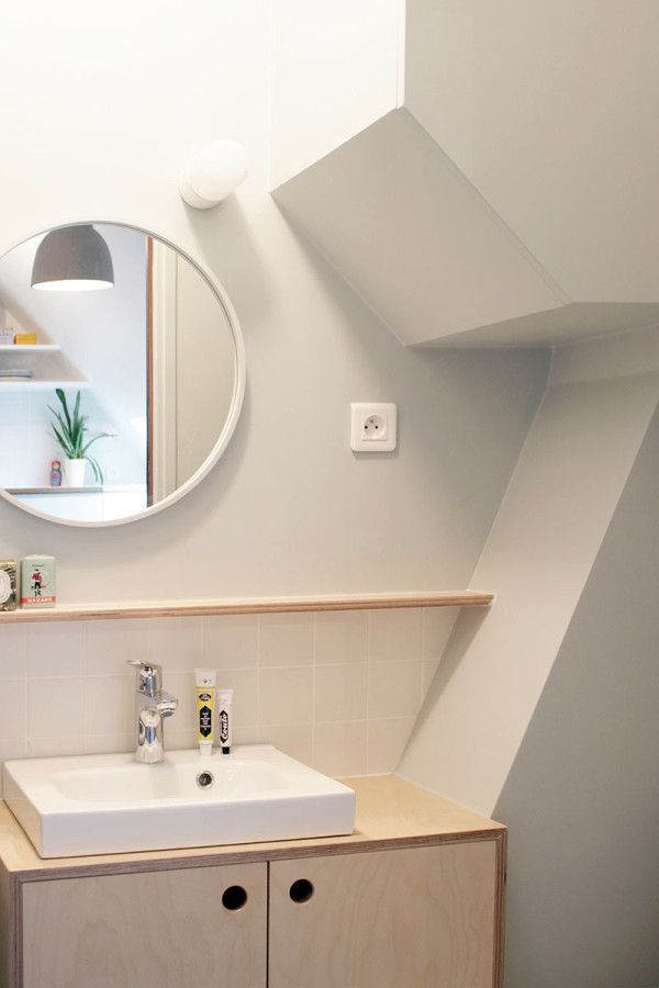 Abundenta spatiilor de depozitare ar putea trece usor neobservata in aceasta mansarda. Deschizaturile pe diagonala realizate in usile dulapurilor contribuie la iluzia de spatialitate pe care acestea o dau locuintei.