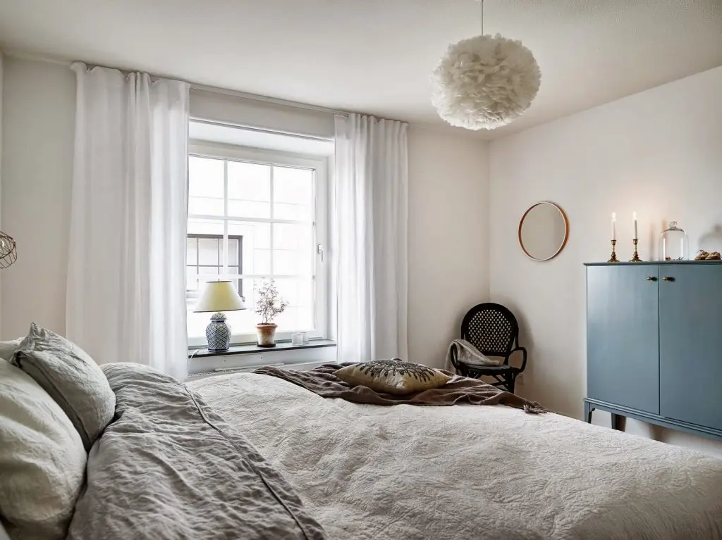 Dormitoarele apartamentului au suprafete generoase. In cazul dormitorului matrimonial, este necesar sa admiram modul in care lampa rotunda atarna din tavan. Dormitorul secundar imparte spatiul cu un birou la care se poate lucra in liniste in orice perioada a zilei.
