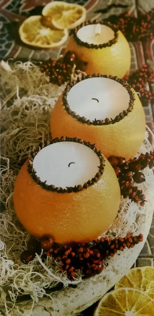 Ornamente naturale pentru Craciun: lumanari din portocale