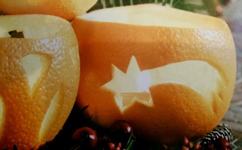 Se taie o bucata din partea de sus a portocalei astfel incat diametrul capacelului taiat sa corespunda cu cel al suportului de lumanare. Se scoare cu grija interiorul portocalei, umpland golul cu nisip, dupa care se asaza lumanarile. Cuisoarele se infig de jur imprejur in coaja alba a portocalei.