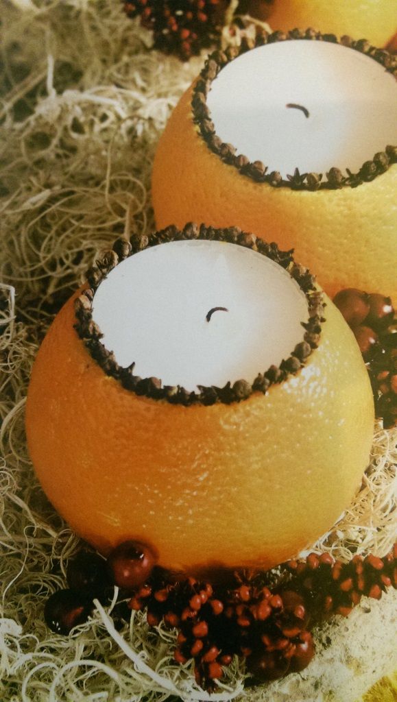 Ornamente naturale pentru Craciun: lumanari din portocale