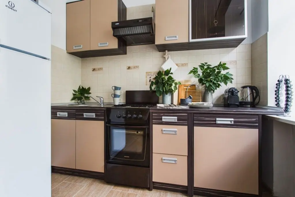 Bucataria m-a surprins. Placut. Recunosc ca m-as fi asteptat sa vad mult alb, ca intr-o amenajare tipica scandinava. Mobilierul pastreaza o nota usor vintage sau retro, iar culorile crem-ciocolatiu merg de minune cu tematica setata. Cu siguranta, si scaunele au farmecul lor. si frontul format din placi ceramice bej creeaza aceasta impresie de caldura si sentimentul acela usor nostalgic de acasa.
