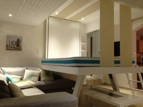 Pat la inaltime, poate fi montat in apartamentele mici care necesita spatiu pentru camera de zi